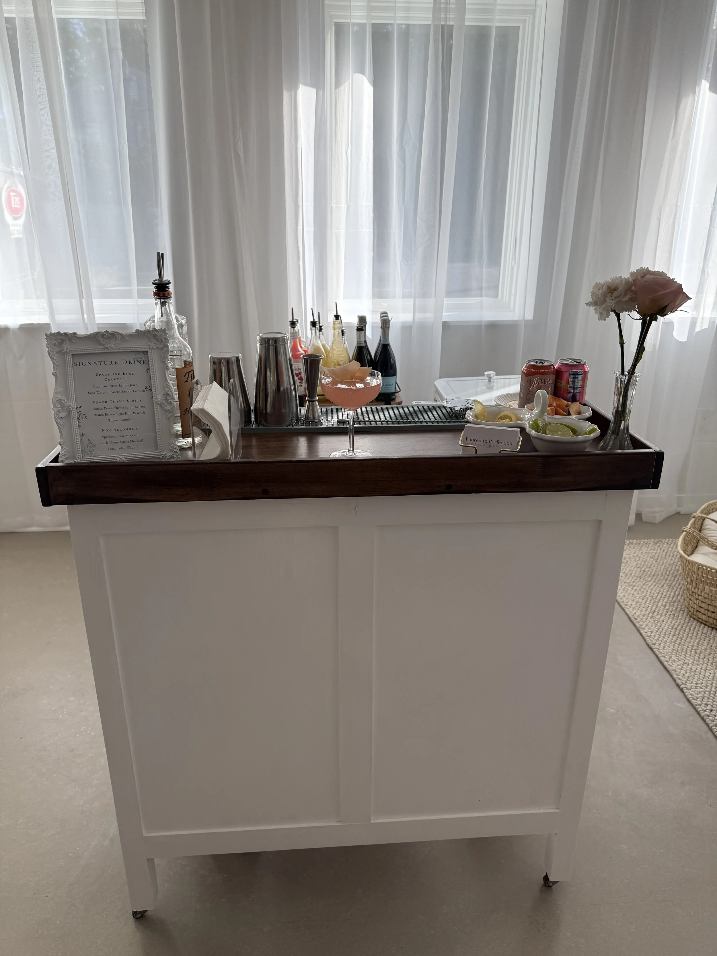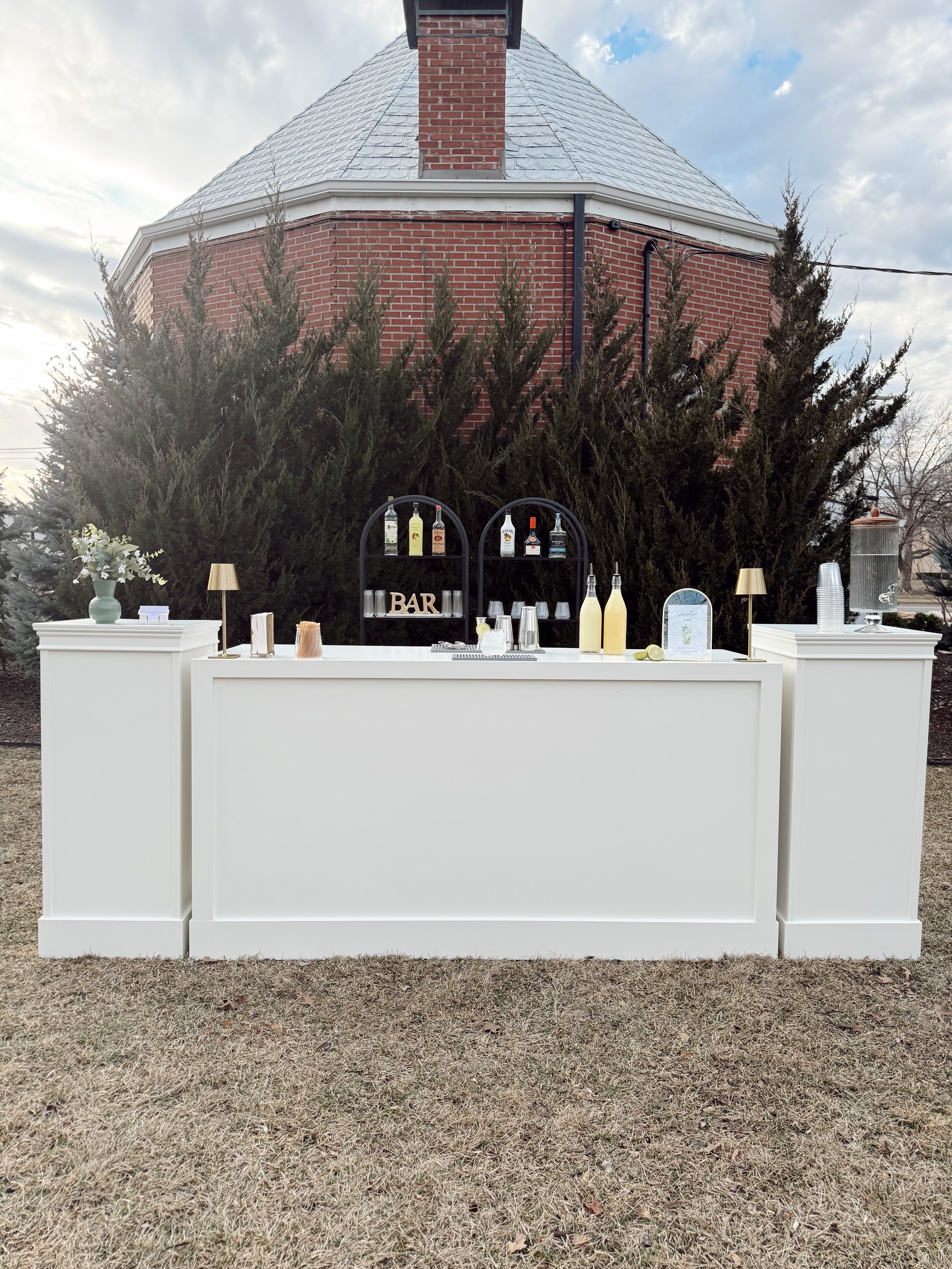 This all white bar was made to be the centerpiece of any event! Add the two additional matching pillars to give it that special touch!